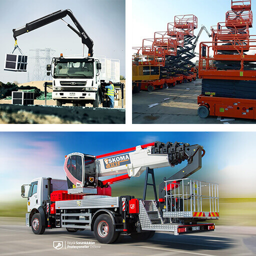Makaslı platform ve çalışma platformları ile yüksekte güvenli çalışma imkanı sağlamaktadır. Farklı yükseklik 8 ile 20 metre seçenekleri mevcuttur.
